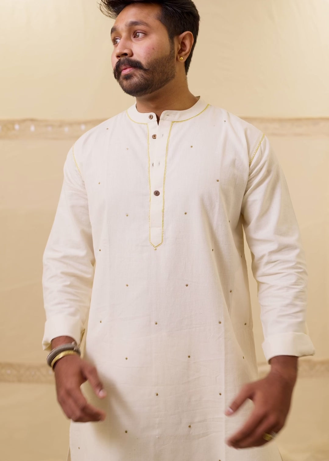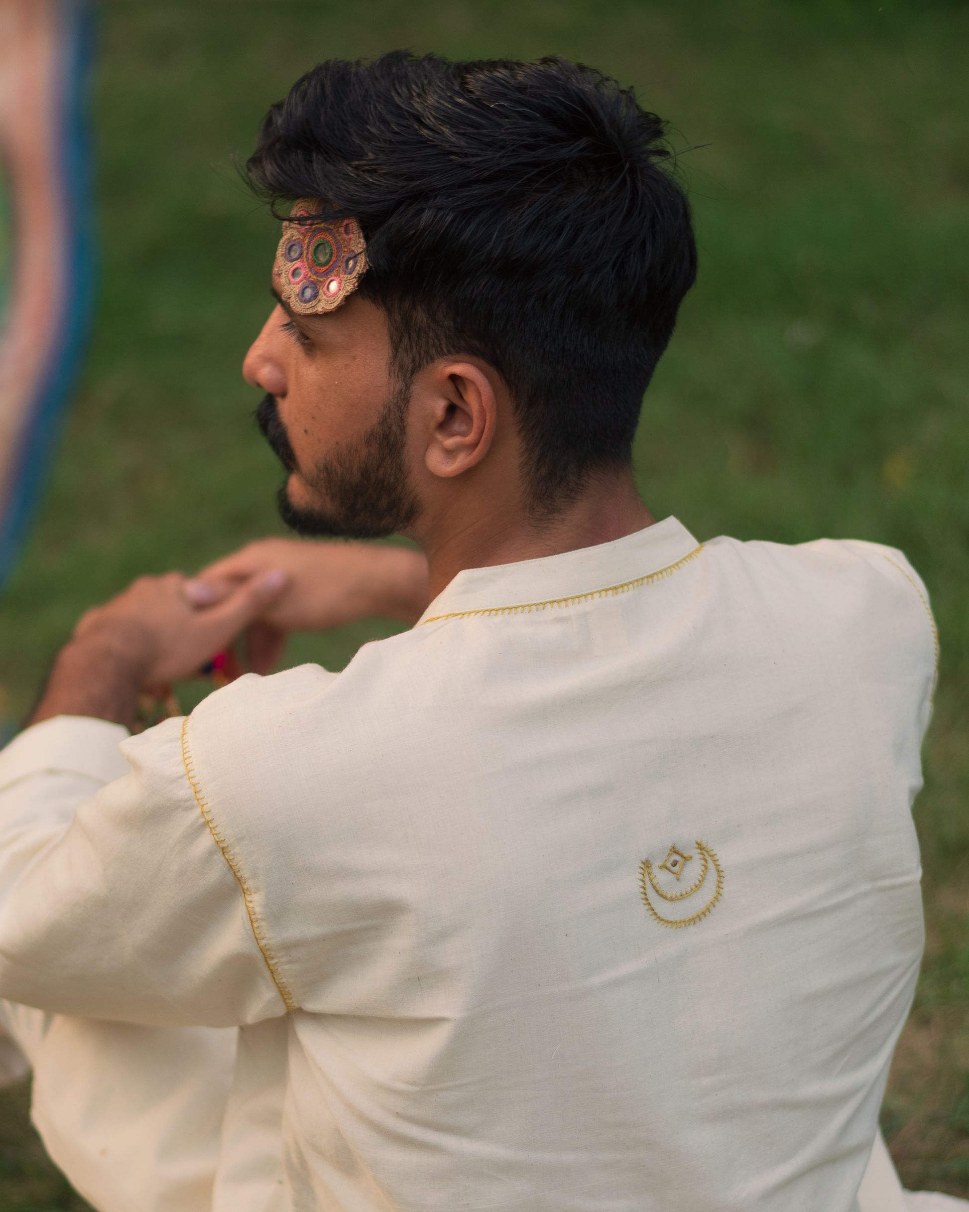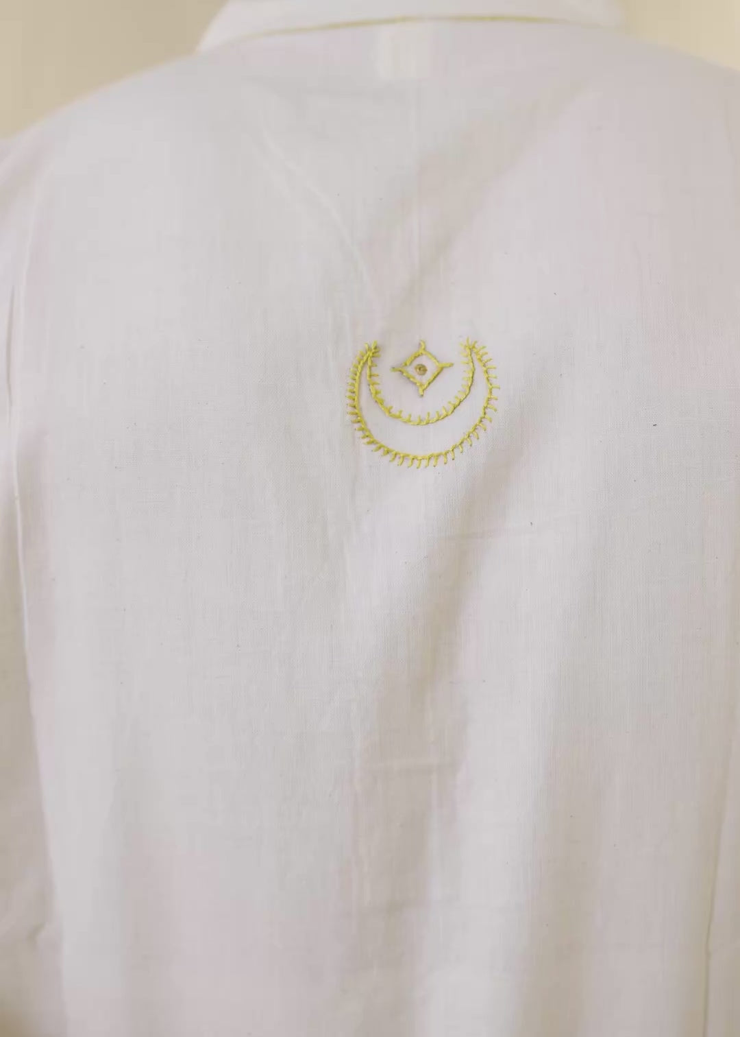 All fabrics are handwoven by artisans. Natural variations such as slubs, irregularities, or weaving marks are part of the handcrafted process and add to the unique character of each garment.
